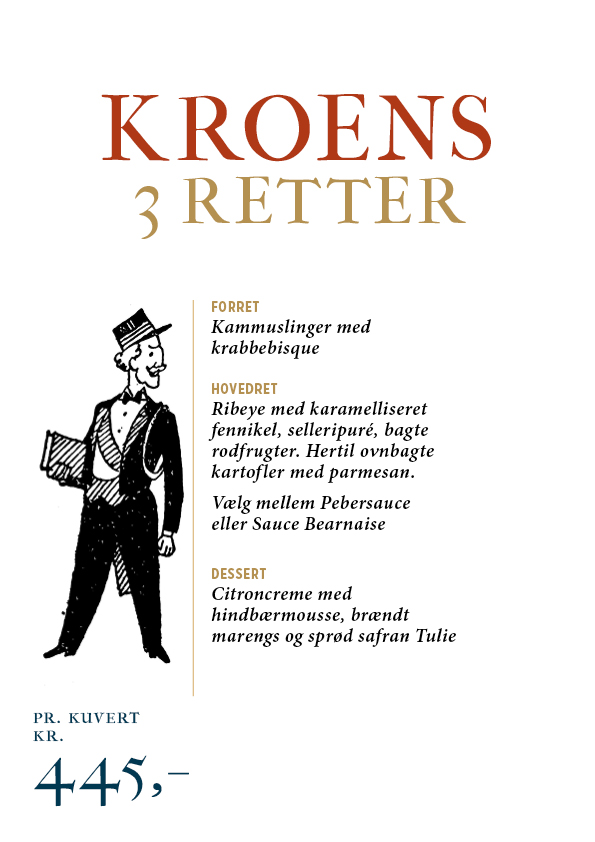 Serveres med Pommes Duchesse, grilltomat, champignon og frisk grønt. De vælger mellem vores hjemmelavede sauce Bearnaise – eller – hvis De hellere er til det lidt hottere – pebervarianten med en fyrig sauce Madagaskar, der vil noget.