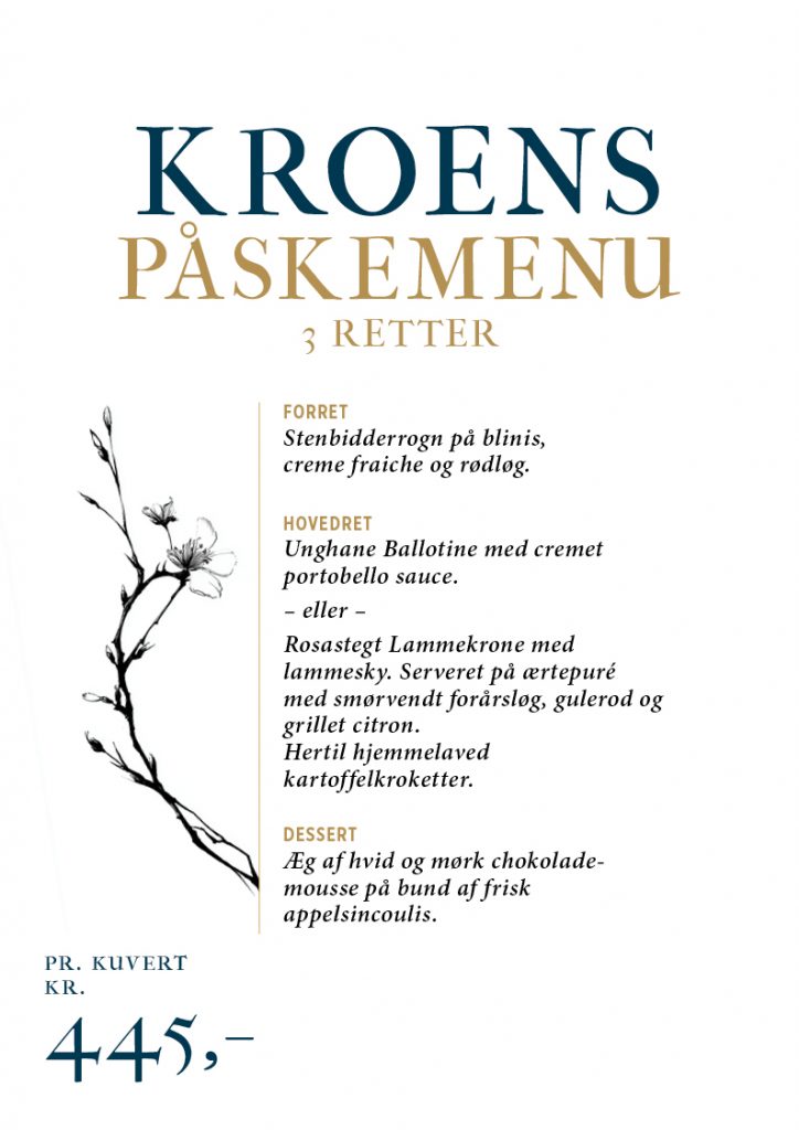 Vi serverer aftenens menuer for Dem mellem 17:30 – 21:00 mandag til søndag.