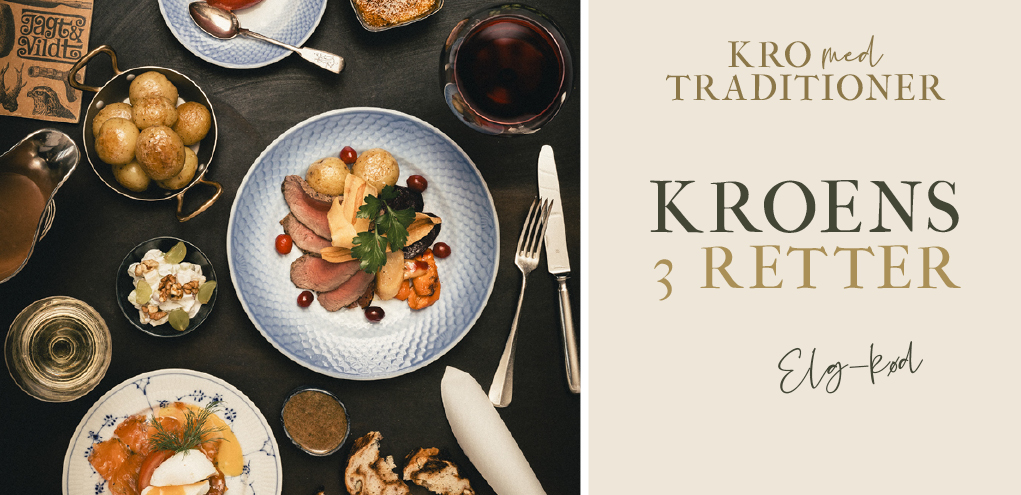 Kroens 3-retters Elg-menu serveres fra medio september 2025 og sålænge den er i sæson.